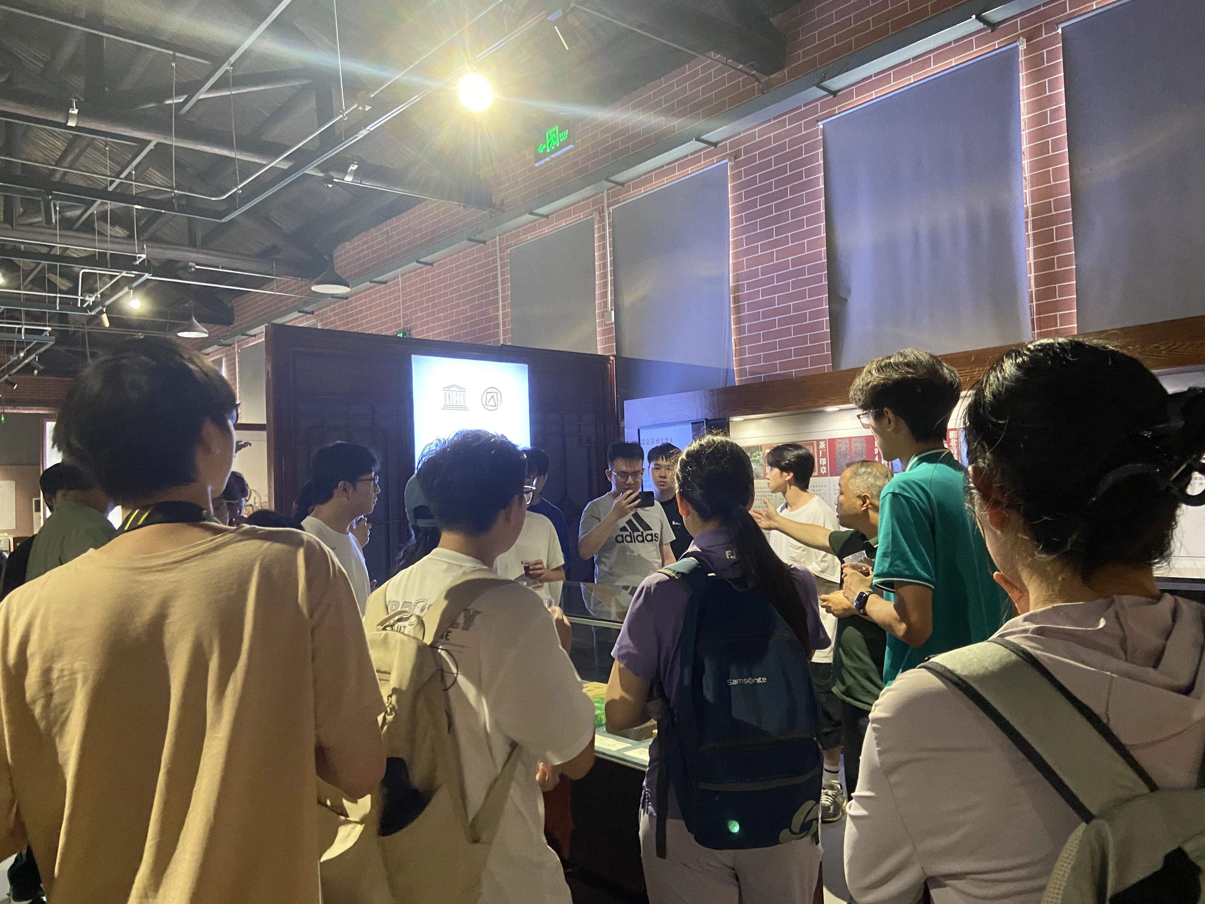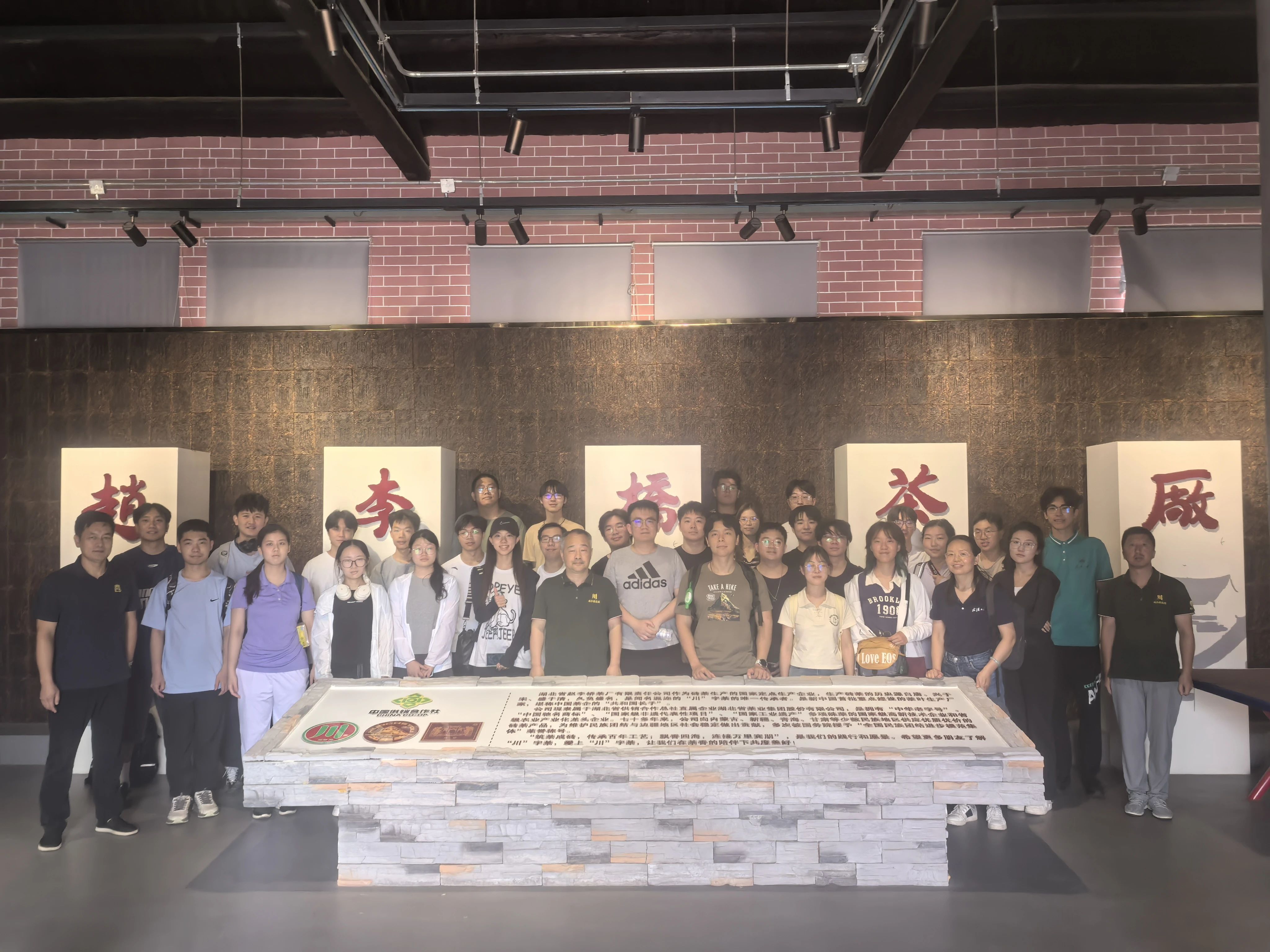 在“趙李橋磚茶制作技藝” 第五代代表性傳承人陳軍海的專業(yè)講解下,調(diào)研團隊首先走進川字茶博物館。一件件承載歷史的制茶工具、一幅幅珍貴的老照片,生動訴說著茶廠百余年的風(fēng)雨歷程;館內(nèi)豐富的藏品與史料,清晰展現(xiàn)了赤壁青磚茶 “源于唐、興于宋、盛于明清” 的發(fā)展脈絡(luò),以及其在萬里茶道貿(mào)易中扮演的重要角色。同學(xué)們認真聆聽講解,不時提問互動,深入探尋青磚茶的文化內(nèi)涵。