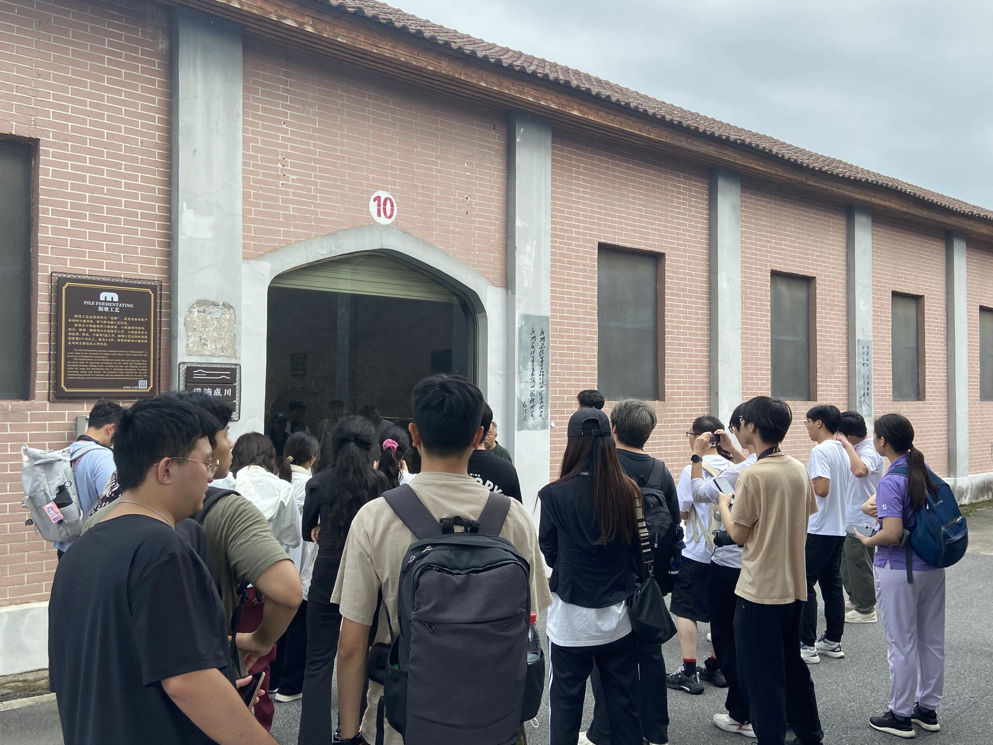 隨后,團隊來到渥堆發(fā)酵陳化工藝區(qū)。陳軍海詳細解析這一核心工藝的奧秘, 茶葉在微生物和濕熱作用下發(fā)生的奇妙轉(zhuǎn)化,引得師生們駐足觀察、頻頻追問。最后,眾人走進產(chǎn)品銷售中心,琳瑯滿目的茶產(chǎn)品與新穎的營銷模式,直觀呈現(xiàn)出茶廠在傳承中創(chuàng)新發(fā)展的成果。