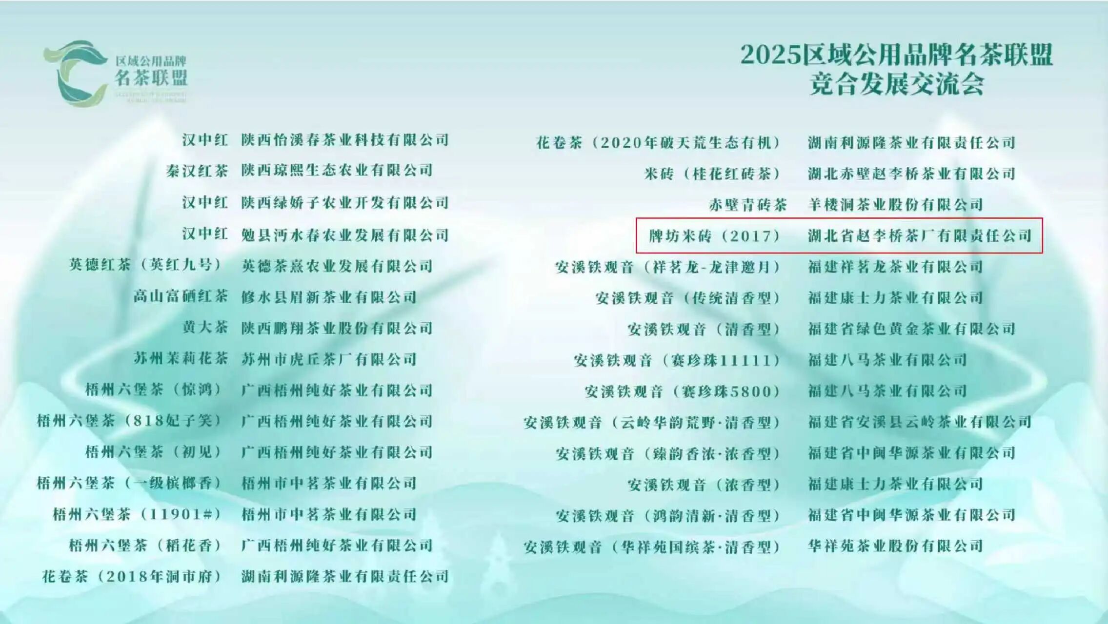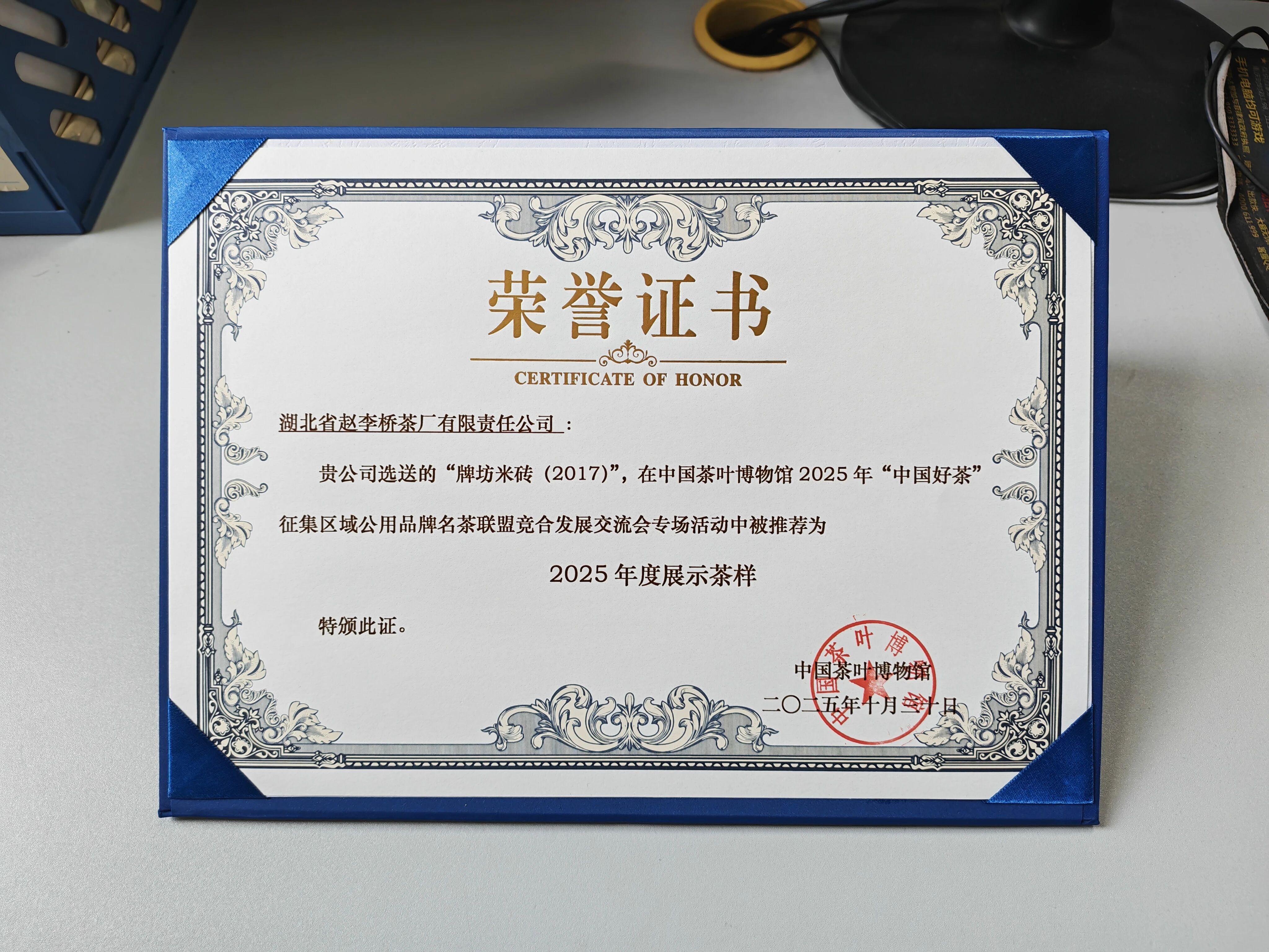 近日,從中國茶葉博物館2025年 “中國好茶” 征集區(qū)域公用品牌名茶聯(lián)盟競合發(fā)展交流會傳來喜訊:湖北省趙李橋茶廠有限責任公司選送的 “牌坊米磚(2017)”,憑借卓越品質、精湛工藝與深厚文化底蘊,被推薦為2025年度展示茶樣!